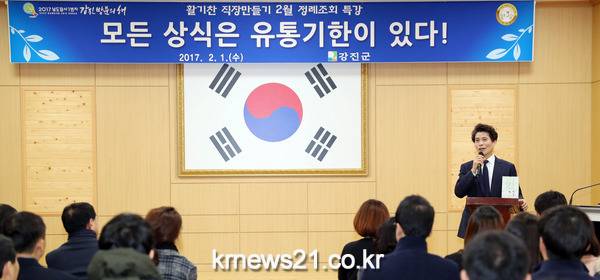 특히 채원영 보해양조 대표이사를 초빙해‘모든 상식은 유통기한이 있다!’라는 주제로 특강을 진행했다. 강진군은 매월 정례조회 시 도청, 중앙부처 공직자나 저명인사를 초청해 직무능력향상을 위해 다양한 주제로 강의를 실시하고 있다.