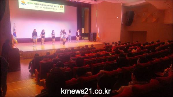 시흥시(시장 김윤식)는 지난 2일 오후 4시부터 약 2시간 동안 시흥시청 늠내 홀에서 시흥시 사회복무요원을 대상으로 축하공연 및 청년학교 소개교육·사고예방 교육을 실시했다. 축하공연은 한국산업기술대학교 댄스동아리 GAN.G(간지)와 여고생 댄스동아리 DZG(디지쥐)에 의해서 이루어졌다.