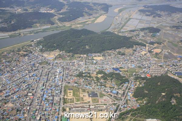 ▲ 상공에서본 부여군 시가지 전경
