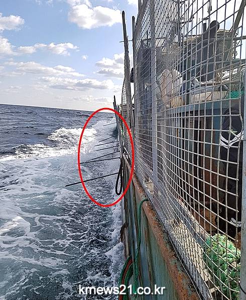 우리 해역에서 쇠창살을 설치하고 불법조업을 감행한 무허가 중국어선 70여 척에 대해 해양경찰이 올해 처음으로 무기를 사용 강력하게 퇴거조치 했다.