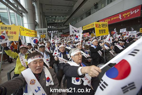 시민들은 태극기를 들고 일본이 제정한 독도의 날 폐지, 부당한 독도 영유권 주장 중단, 침략의 과거사 반성 등의 구호를 외치며 일본 정부를 규탄했다.