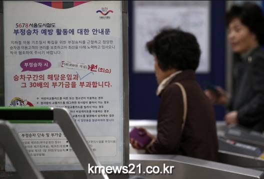 메트로 관계자는 “개찰구에 우대권과 할인권 사용시 다른 색깔을 표시되도록 시스템을 개선해 부정승차 단속효율성을 높이고 있다”면서도 “역무원들이 부정승차 단속만 할 수는 없는 것이 현실이다. 부정승차는 범죄라는 사실을 인식하고 서비스에 대한 정당한 요금을 지불해야 한다는 시민의식이 중요하다”고 말했다.