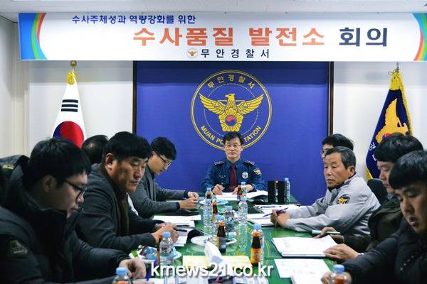 무안경찰서(서장 정경채)에서는2017. 2월 27일(월) 10:00 2층 소회의실에서 경찰서장 주재로 수사 주체성과 역량강화를 위한 수사품질 발전소 회의를 개최하였다.