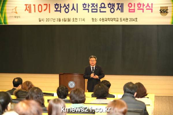 평생교육도시 화성시가 시민들에게 대학교육의 기회와 취업 등 사회참여를 지원하는 ‘화성시 학점은행제’의 제 10기 신입생 입학식을 6일 수원 과학대학교에서 개최했다.