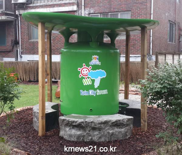 빗물 저금통은 빗물을 모아두는 저장 시설이다. 모은 빗물은 조경·청소·생활용수로 활용할 수 있다. 상수도 요금을 절감하는 효과도 얻을 수 있는 친환경 물 공급 시설이다.