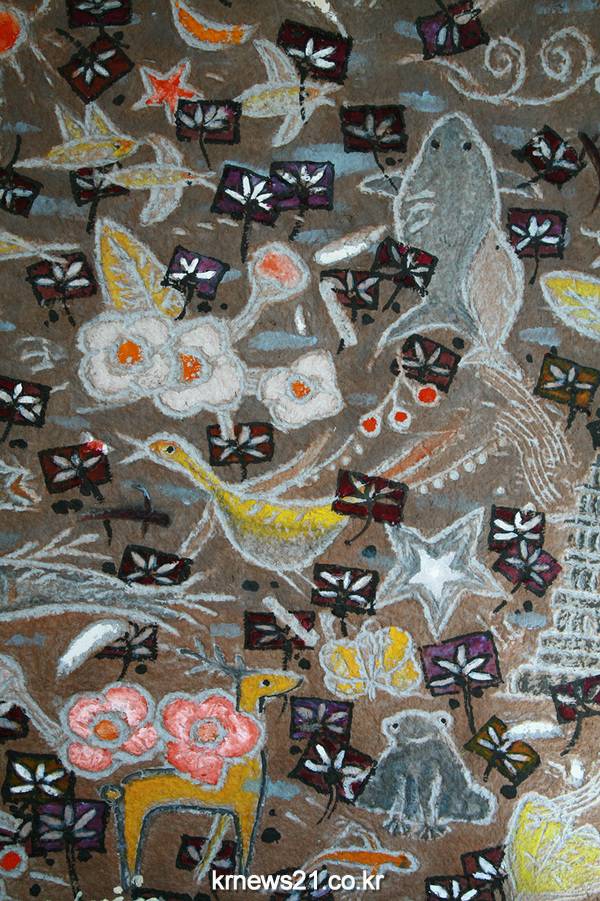 "사랑의 기쁨"은 무형의 사랑을 애틋하고 말랑말랑한 감성으로 표현하기 위해 새, 꽃, 음표, 별, 벌 등 등장 소재가 따뜻하다. 사랑을 노래한 음악을 듣고 영감을 얻어 작품을 만들기 시작 했으며 음악, 시, 소설은 사랑을 표현한 역작들이 많지만 그림으로 사랑의 표현은 어렵다. 작가는 누구나 느끼는 사랑의 감정을 화폭에 담아 자신만의 느낌을 전달하고자 했다.