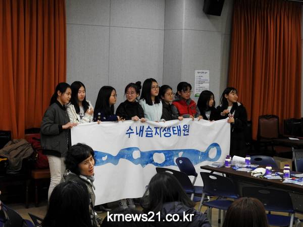 백찬홍 의장(성남환경운동연합)의 인사말로 시작된 이 날 행사는 분당을 지역구의 더민주당 김병욱 국회의원과 성남시청 하천관리과 장미라 팀장이 격려사가 이어졌다.