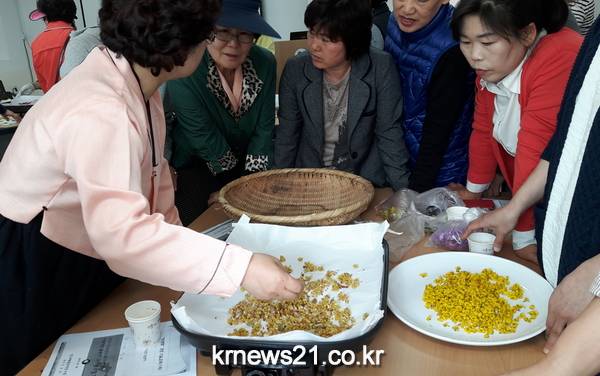 당진시농업기술센터가 운영하는 꽃차 소믈리에 자격증반 과정이 인기몰이를 하고 있다.