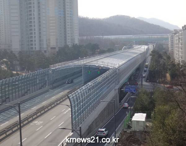성남시는 최근 1년 7개월간(2015.7.20~2017.2.24) 사업비 155억원을 투입해 이곳 도로에 소음저감 시설을 설치하고, 2월 24일 자로 준공 검사를 마쳤다.