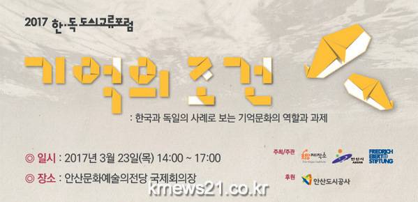 안산시(시장 제종길)는 3월 21일부터 23일까지 안산시 일원에서 희망제작소 및 독일의 에버트 재단과 함께 ‘2017 한·독 도시교류포럼’을 개최한다.