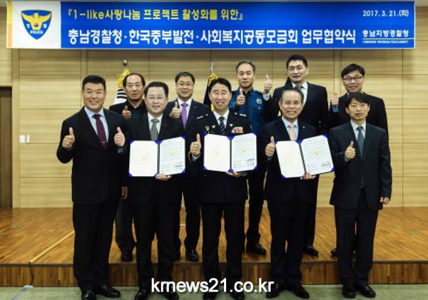 한국중부발전(사장 정창길)은 3월 21일(화) 충남지방경찰청, 충남사회복지공동모금회와 공동으로 범죄피해자에 대한 지원을 위한 ‘1(아이)-like 사랑나눔’ 프로젝트 협약을 체결하였다.