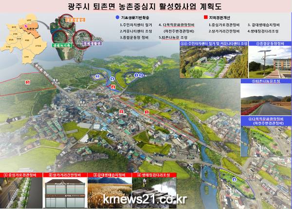 퇴촌면 농촌중심지활성화사업은 시가 지난 2015년 농림축산식품부 공모사업의 대상지로 선정돼, 2016년부터 2019년까지 국비 39억 2,000만원과 시비 16억 8,000만원 등 총 56억원이 투자되는 사업이다.