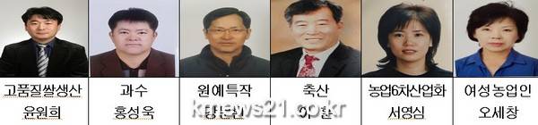 고품질 쌀 생산부문 미양면 윤원희(48)씨, 과수부문 홍성욱(58)씨, 원예특작부문 강문환(59)씨, 축산부문 이훈(66)씨, 농업6차산업화부문 서영심(48)씨, 여성농업인부문 오세창(57)씨를 선정 발표했다.