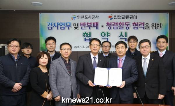 인천도시공사(사장 직무대행 전상주)는 지난 28일 인천교통공사(사장 이중호)와 감사업무 및 청렴활동 협력을 위한 업무협약을 체결했다.