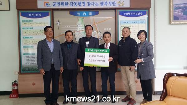 무안읍 이장협의회는 41개 마을 복지이장들이 십시일반 정성을 모아 총 50만원을 무안읍에 기탁했다.