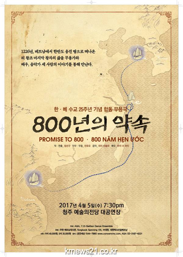 한국과 베트남의 수교 25주년을 맞아 세 나라, 세 장르의 예술가가 함께 하모니를 이루는 무용극, ‘800년의 약속’은 4월 5일 청주 예술의전당 대공연장에서 공연된다.