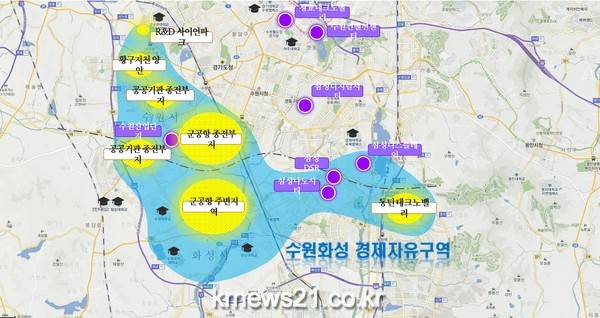 군 공항 이전사업과 연계해 ‘수원·화성 경제자유구역 지정’을 공약과제로 제시했다. 수원과 화성시 등 경기 남부권 전체 경제 파이를 키우는 게 목표다. 군공항 종전부지와 화성시 동부권의 주변 미개발지역, 화성 동탄 테크노밸리 등을 경제자유구역으로 신규 지정, 수원·화성 간 상생협력과 도시경쟁력의 구심점으로 활용한다는 계획이다.