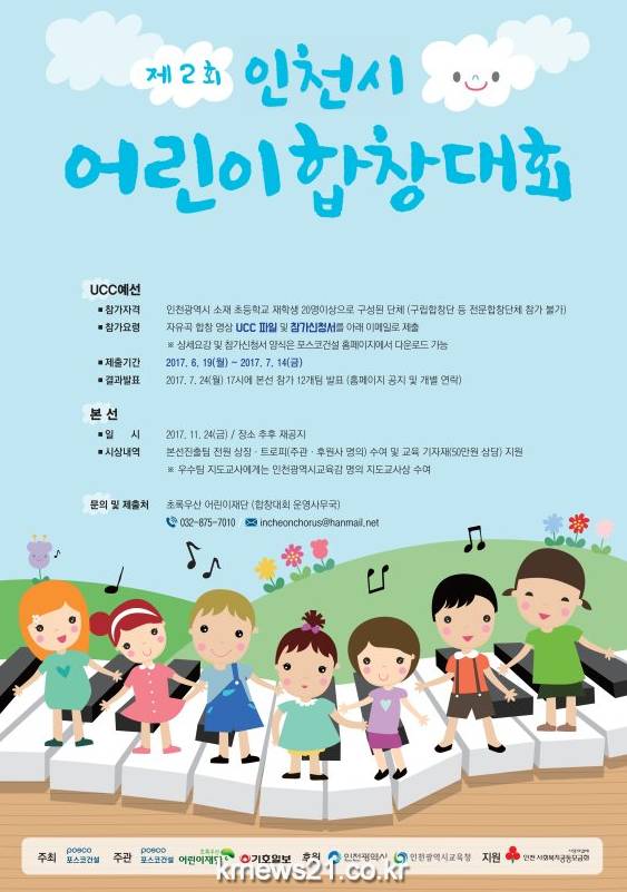 포스코건설이 인천시에서 유일하게 개최되는 초등학생 합창대회 '제2회 인천시 어린이 합창대회'의 참가자를 모집한다고 30일 밝혔다.