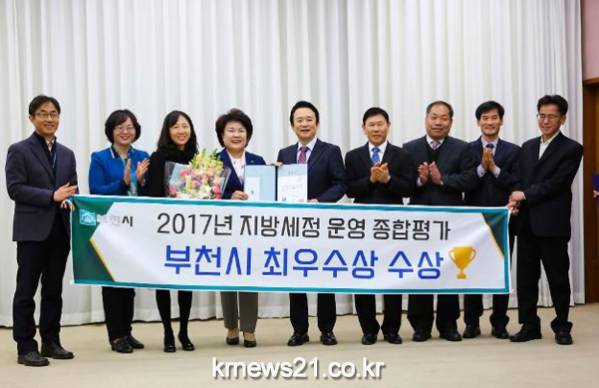 부천시는 경기도가 실시한 ‘2017년 세정운영 종합평가’에서 최우수기관으로 선정돼 4월 3일 기관표창과 함께 시상금 1억 원을 수상하는 영예를 안았다.