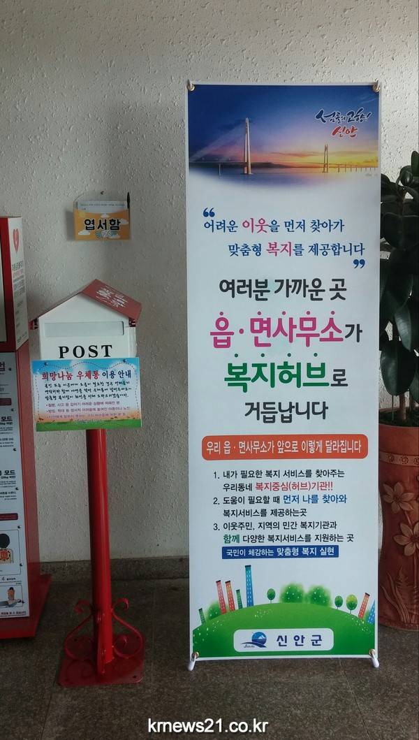 보건복지부의 맞춤형복지 기본동인 신안군 압해읍은 지난 3일 복지사각지대 축소를 위해 읍사무소에 ‘희망나눔 우체통’을 설치했다.