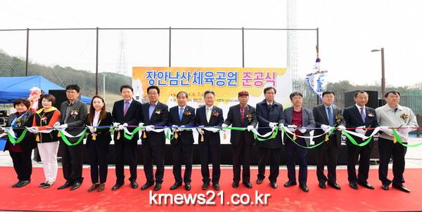 장안면 사랑리 2-4번지에 조성된 장안남산체육공원은 지난해 5월 착공해 총 100억 원의 사업비가 투입됐다.