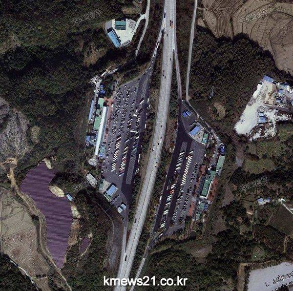 ▲ 생활지리정보시스템을 통해 하늘에서 바라본 정안알밤휴게소 모습