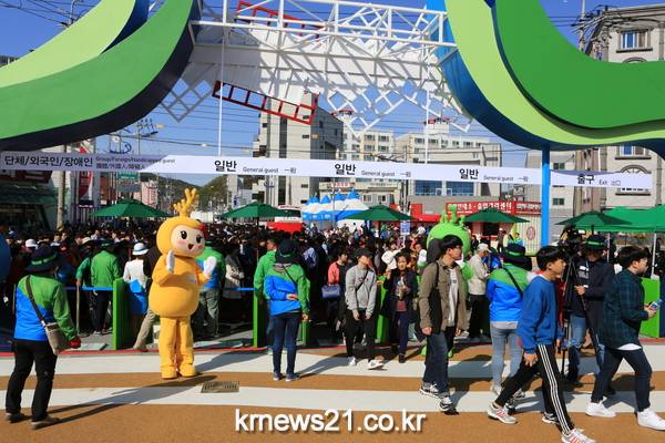 개장행사는 해군군악대 공연, 얼쑤 타악공연을 시작으로 테이프컷팅, 성공기원 풍선 날리기, 국내․국외 1호 관람객 축하이벤트를 진행하고 박람회장 투어를 했다.