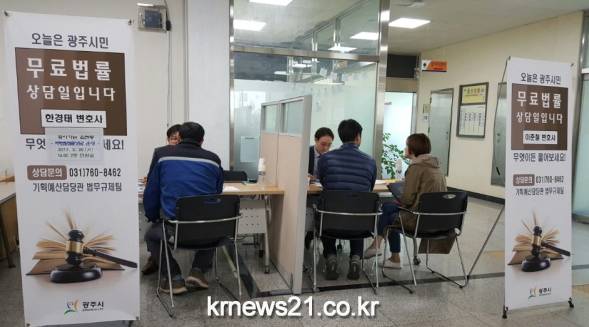 상담은 총 20명을 대상으로 대면상담(1명 당 20여분)이 진행되며, 법률상담이 필요한 주민은 사전에 광주시청 기획예산담당관으로 전화 및 방문 접수하면 된다.