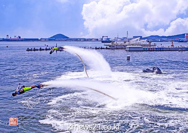 ▲ 돌고래닮기같은 무대 다른 시간과 다른 조명 다른 시간대에 촬영되어 한 장의 사진으로 만들어진 ‘꿈의 연주’는 “내 태초부터 빛과 꽃이오니 밝으면 밝고 아름다우면 아름다우리라”는 시어로 생각에 따라 의지에 따라 아름다움도 밝음도 만들어진다는 메시지를 담고 있다.