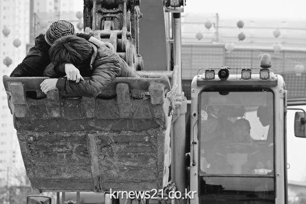대규모 시민 참여, 건설 중장비 퍼포먼스로 스펙타클 연출