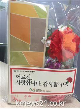성남시 독거노인 종합지원 센터(윤문자 에프렘 수녀(센터장))는 5월 8일 어버이날을 맞이하여 ‘2017년 홀몸 어르신을 위한 카네이션 나눔 행사’를 진행하였다. 본 행사는 지역사회 내 홀로 어버이날을 보내는 어르신에게 카네이션 전달을 통해 감사와 존경의 마음을 전달하고, 어르신의 고독감을 감소시키기 위해 진행되었다.
