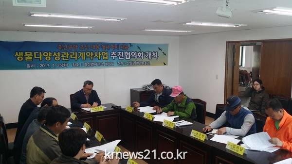 추진협의회는 환경녹지과장을 위원장으로 하여 지역주민, 공무원, 철새연구센터장 등 11명으로 구성되어 있다. 제1차 협의회 결과, 생물다양성 관리계약 사업 추진에 필요한 계약방식, 계약지역, 대상자 선정 및 단가선정 등을 심의‧결정하고 사업계획은 군 홈페이지에 5월 18일까지 공고 중에 있다고 밝혔다.