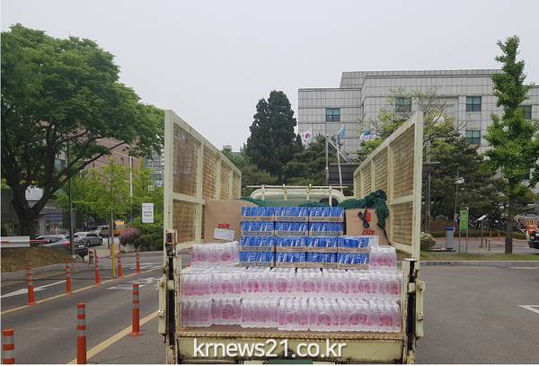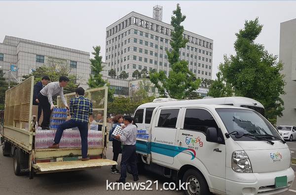 이날 안정민 행정국장을 비롯한 시 관계자는 강릉시청을 방문해 복사골 맑은물 5000병, 빵 1000개, 음료 2500개를 전달하고 위로했다.