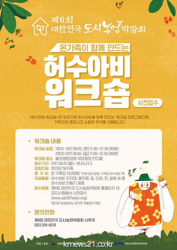 <</span>제6회 대한민국 도시농업박람회>에서는 5월 1일부터 24일까지 허수아비 워크숍을 포함한 3가지 프로그램의 사전접수를 진행한다.