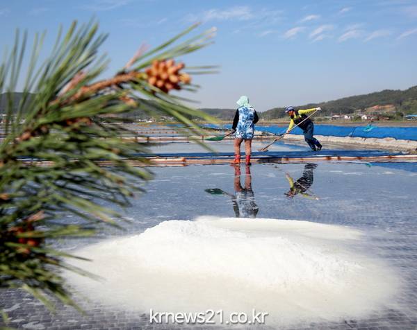 - 천일염전에 송홧가루가 날려 와 쌓이면서 지역 특산품인 명품 송화소금이 본격적인 생산에 돌입했다.