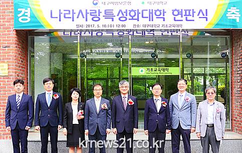 대구대학교는 대구지방보훈청과 '나라사랑 특성화대학 사업'의 성공적 운영을 위한 상호협력 협약을 체결했다고 12일 밝혔다. 이번 협약을 통해 양 기관은 ▲나라사랑특성화대학 사업 프로그램 과제별 추진 ▲복지 및 자원봉사 프로그램의 개발 및 제공 ▲대학 제반 행사 및 문화·예술 공연 등을 협력한다.