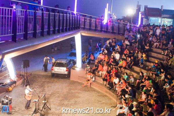 된다.버스킹 공연장은 시민탑・머드・분수 광장 등 4개소로, 분수광장의 경우 주・야간으로 나눠 운영한다.공연자 선정