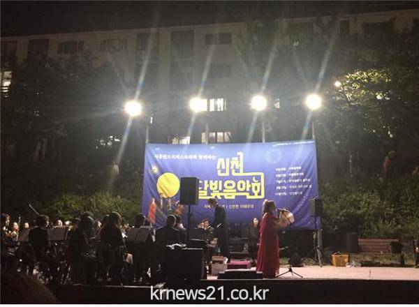 신천동 주민센터(동장 양승학)는 지난 5월 19일 19시 30분부터 약 90분 간 신천천 야외무대에서 ‘신천 달빛음악제’를 개최했다.