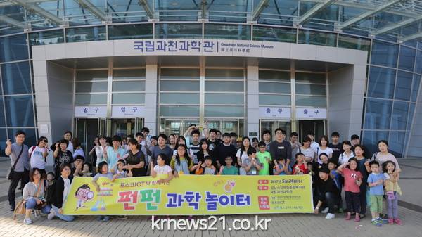 이번 행사는 포스코 1%나눔 재단(이사장 권오준)의 후원과, 포스코 ICT(사장 최두환)의 재능기부로 진행되었으며, 행사에 참여한 아동들은 자원봉사자 선생님들과 즐거운 과학 체험도 하고 과학관 관람도 함께하면서 행복한 추억을 만들 수 있었다.
