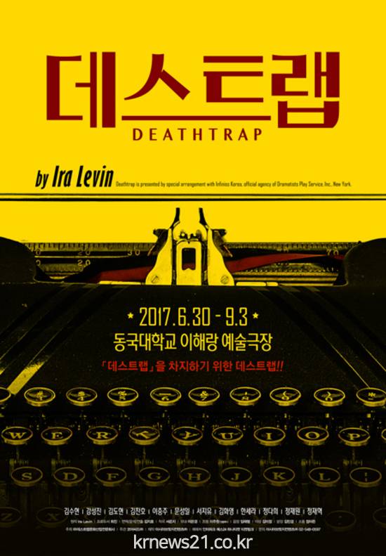 '브로드웨이 최고의 반전 스릴러'로 꼽히는 연극 '데스 트랩'이 오는 30일부터 9월 3일까지 동국대 이해랑 예술극장에서 공연된다.