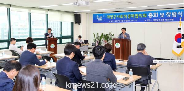 인천시 계양구 사회적경제기업인, 마을기업, 협동조합, 자활기업 등 다양한 주체들이 모여서 구성된 ‘계양구 사회적경제협의회’가 지난 31일 계양구청 대회의실에서 창립총회를 갖고 공식 출범했다.
