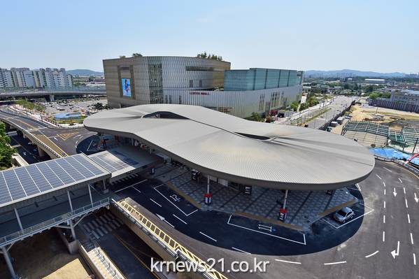‘수원시 교통의 허브’ 역할을 하게 될 수원역환승센터가 16일 개통식을 하고, 시민들을 맞이한다. 수원역사와 롯데몰 사이(권선구 서둔동 296-3)에 건립된 환승센터는 지하 1층·지상 2층 규모로, 건축면적은 축구장 5배 넓이인 3만 5160㎡에 이른다.