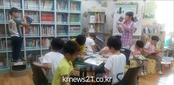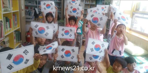6월은 호국보훈의 달이기도 하며 태극기 그리기 행사를 통해 어려서부터 태극기에 대한 관심을 높이고 나라 사랑하는 마음을 키워주고자 수업을 계획하게 되었다고 한다.
