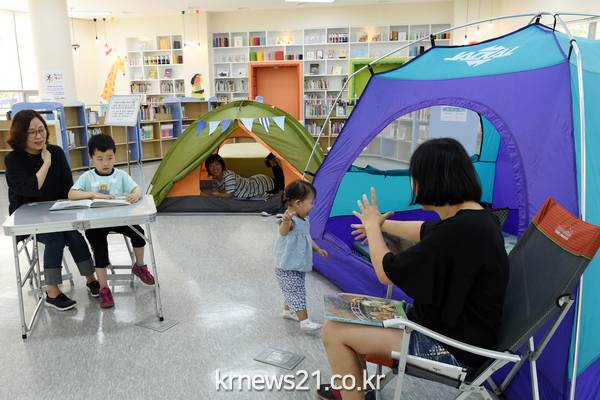 수원시 호매실 도서관은 7월까지 자녀와 함께 도서관을 찾는 시민들을 위해 ‘도서관으로 떠나는 여름 캠핑’ 서비스를 제공한다.