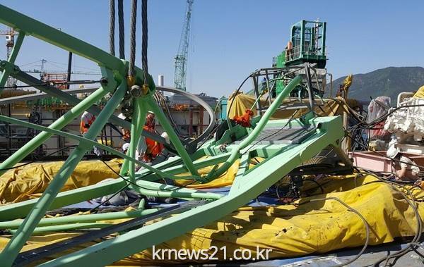 사고는 노동절인 지난달 1일 오후 2시50분께 경남 거제시 삼성중공업 거제조선소 7안벽에서 났다. 800t급 골리앗 크레인과 32t급 타워 크레인이 충돌해 타워 크레인 지지대가 부러지면서 바닥으로 떨어졌다. 이 사고로 크레인 아래에서 작업하던 삼성중공업 협력업체 소속 비정규직 노동자 6명이 숨지고, 25명이 크게 다쳤다.