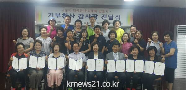 부평구(구청장 홍미영) 산곡1동 지역사회보장협의체(공동위원장 김희순·이종오)는 지난 16일 동주민센터 지하 다목적실에서 ‘기부천사 감사장 전달식’을 가졌다.