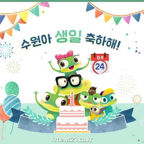 수원시 공식 캐릭터인 ‘수원이’와 ‘수원청개구리패밀리’ 탄생 1주년을 맞아 수원시가 다양한 축하 이벤트를 연다.