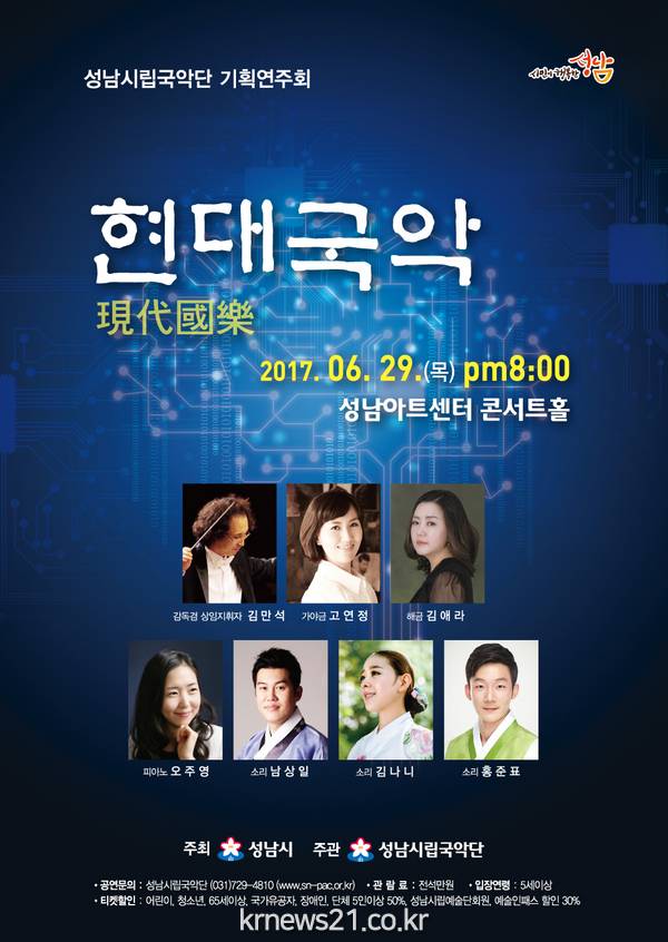 신명나고 흥겨운 우리소리, 우리가락을 현대적인 음악으로 구성한 성남시립 국악단 기획연주회‘현대국악’을 6월 29일 목요일 오후 8시 성남아트센터 콘서트홀에서 공연한다.
