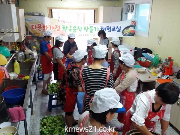 수원시 권선구(구청장 이필근)는 27일, 세류1동 다문화사랑방에서 다문화가정26명과 함께 한국음식 만들기 체험교실을 개최했다.