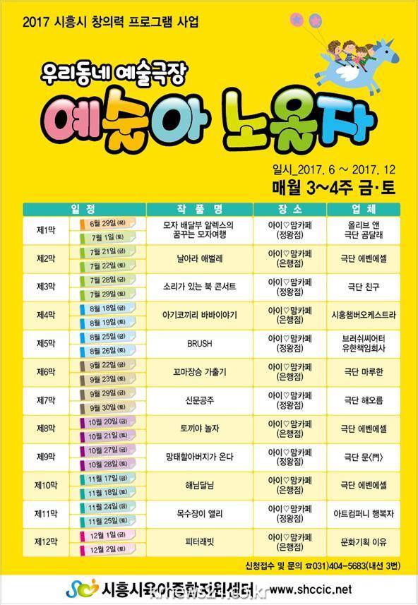 시흥시(시장 김윤식)는 영유아의 발달 수준에 맞는 어린이 전문 예술 공연을 통해 영유아의 상상력과 호기심을 자극하여 창의적인 인재로 육성하고자, 창의력 프로그램 사업을 6월말부터 12월까지 실시한다.